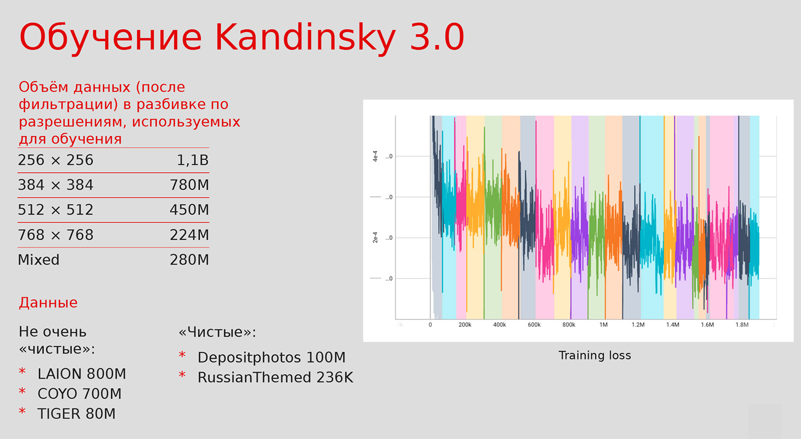 Итог. Обучение с нуля позволяет получить красивые генерации, но в очень узком домене. Поэтому в Sber AI выбрали fine tuning модели с использованием text2image-модели — это значительно ускоряет процесс.