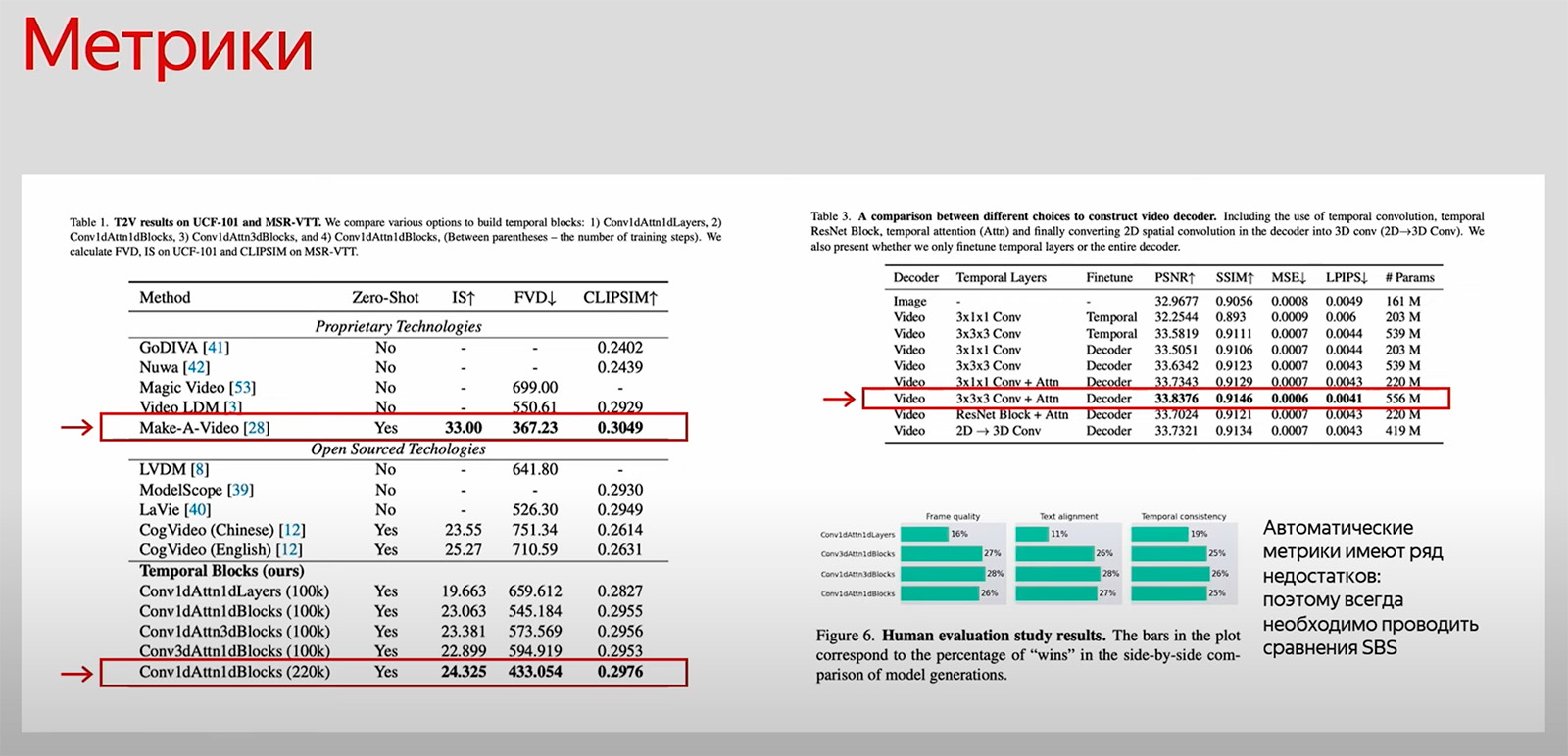 Также использовали human evaluation — спрашивали мнение разметчиков. Для финального обучения выбрали ту модель, которая больше всего им понравилась. По данным опроса, более высокую оценку получила архитектура, в которой темпоральные слои объединены в блоки. У разработчиков нет окончательного ответа на вопрос о том, какое решение оптимальное, но понятен общий вид архитектуры. Остаётся увеличивать число данных.
